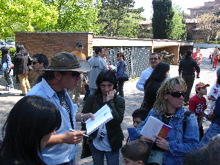 scrivendo filastrocche a una festa della scuola. Con le mamme si parla della bellezza dello scrivere del leggere e l'importanza di lavorare con i bambini sull'aspetto della fantasia
